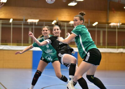 Die zweite Begegnung des Heimspieltags war schon ein richtiges Spitzenspiel mit dem HSV Bergtheim empfing man den bis dahin zweitplatzierten der Liga. Die erste Hälfte der Partie sollte diesem Spitzenspielcharakter auch wirklich gerecht werden. Es entwickelte sich eine enge Begegnung, in welcher sich beide Parteien nichts schenkten. In der zweiten Halbzeit veränderte sich allerdings das Spielgeschehen zu Ungunsten der HSG. Bis zur 42. Spielminute zogen die Gäste aus Unterfranken in einer sehr starken Phase davon und erspielten sich dadurch mit 21:26 einen großen Vorsprung. Nun zeigten unsere Mädels Nerven. In einem Spiel wie diesem ist dies auch nicht zu verdenken. Die Folge daraus ist ein eher verunsichert und ideenlos wirkendes Spiel, sehr ungewohnt für unsere sonst so durchschlagskräftigen HSG-lerinnen Zwar versuchte man sich bis zum Abpfiff nochmal gegen die drohende Niederlage zu stemmen, jedoch präsentierten sich die Gäste zu stark und abgebrüht, um die von ihnen herausgespielte Führung wieder abzugeben. Zum Schlusspfiff steht eine 33:39-Niederlage im Spitzenspiel auf der Anzeigetafel. Für die weibliche A-Jugend endet damit eine beeindruckende Serie: Sie waren quasi seit eineinhalb Saisons ungeschlagen, egal ob zuhause oder in der Ferne! Eine wirklich außerordentliche Leistung, die durch diese Niederlage gegen an dem Tag starke Bergtheimer nicht geschmälert wird. Kopf hoch, Mädels, und weiterkämpfen!