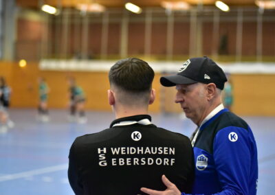 Für die Herren stand die erste Saisonbegegnung mit den Nachbarn aus Ahorn auf dem Plan. Die ersten Minuten des Spiels sollten aber alleine einer Person gehören. Es wirkte zunächst fast so, als wollte unser Wolfi Schulze es heute im Alleingang richten. Seine 4 Tore bedeuteten eine 4:1-Führung in der 5. Spielminute. Doch ganz so einfach sollte es heute nicht werden. Angespornt dadurch kamen nun auch die Gäste immer besser in die Partie. Mit ihren starken Rückraumspielern Florian Scheler-Eckstein und Jakob Kruscha forderten sie die HSG-Abwehr und führten sogar zwischenzeitlich mit 9:11 in der 18. Spielminute. Der Grund dafür waren auch überhastete und unglückliche Abschlüsse auf Seiten der HSG. Für Coach Flo Klihm und das Team allerdings kein Grund, in Panik zu verfallen. Nicht mal eine Auszeit war nötig, um dem Spiel erneut eine Wendung geben zu können. Der Spiel-Lenker Niklas Knauer steuerte mit seinem Team einen 5:0-Lauf an und so erspielte sich die HSG ein 21:15 zur Halbzeit. In der zweiten Hälfte der Partie zeigte sich dann wieder die Unberechenbarkeit der Herren in der aktuellen Saison: Fast jeder eingesetzte Spieler kann einnetzen und ist torgefährlich. Hervorzuheben ist aber an dem Tag dennoch definitiv die Leistung von Wolfi Schulze mit 11 Buden. In den 30 Minuten von Halbzeit 2 ließ das Team nichts mehr anbrennen und verteidigte die „Festung Frankenlandhalle“ mit 35:28! Die Tabellensituation bleibt dadurch „unverändert“: Fichtelgebirge auf Platz 1 mit 24:4 und wir „in ihrem Nacken“ mit 22:2 Punkten.
