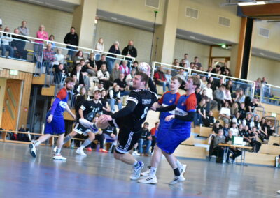 Bei den Herren 2 stand am Abend noch das letzte Punktspiel der Saison an. Gegen Bamberg 3 entwickelte sich kein schön anzusehendes Spiel. Die mit wenig Spielern angereisten Gäste hatten sich wohl vorgenommen, jeden Angriff „voll auszuspielen“, um ihre Kräfte möglichst zu schonen. Ein Plan, der voll aufging. Teilweise mehrere Minuten lange Angriffsspiele der Gäste waren für den Handballzuschauer ein eher ungewohntes Bild. Hinzu kam, dass häufig schon normale Stoppfouls mit Zeitstrafen geahndet wurden, was den Spielfluss zum Stocken brachte und die Abwehr der Heimmannschaft verunsicherte. So ging es mit einem eher unbefriedigenden 10:8 in die Pause. In der zweiten Hälfte nahm man sich vor, vorne etwas abgebrühter zu agieren. Dies und die schwindenden Kräfte der Gästemannschaft sorgten am Ende für einen 28:19-Heimsieg. Da es das letzte Punktspiel der Herren 2 war, würde man nun gerne schon Konkretes berichten, was das Saisonergebnis angeht. Aktuell sieht es so aus, als würde man zumindest als Aufsteiger feststehen, da diese Saison der Meister und der Vize aufstiegsberechtigt sind. Das ist schon mal ein toller Erfolg. Regeltechnisch liest es sich für uns auch so, als müsste es noch zwei separate Entscheidungsspiele um den Meistertitel geben, selbst wenn Creußen ihr letztes Saisonspiel noch gewinnt. Denn neben den Punkten herrscht dann auch Gleichheit im direkten Vergleich der beiden Saisonbegegnungen. Sobald wir in der hierzu Termine haben, informieren wir euch natürlich.