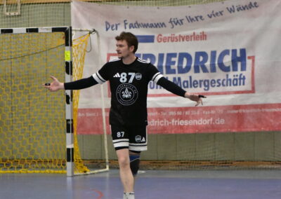 Danach ging’s für die Herren an die Aufgabe, die Heimserie zu verteidigen. Niemand konnte in dieser Saison bisher Punkte aus einem der beiden Wohnzimmer der HSG-Herren entführen und das sollte auch gegen den HC 03 Bamberg so bleiben. Doch der Reihe nach: Wer Nicolas Carl am Donnerstag im Training beobachten konnte, dem war vllt. schon möglich, sich auszumalen, was er am Sonntag abfeiern will, sofern er für sich die Spiellust beibehalten kann. Und das sollte definitiv der Fall sein. Nach 10 gespielten Minuten stand es 8:2 für den Gastgeber, ganze 5 Treffer davon von Nico Carl! In Summe sollte er sein Trefferkonto noch auf 11 Tore in 60 Minuten aufstocken. In den folgenden 20 Minuten der ersten Spielhälfte sollte sich Bamberg dann etwas stabilisieren, dennoch ging es aus HSG-Sicht erfolgreich mit 19:12 in die Pause. Vor allem in der zweiten Hälfte sollte ein weiterer HSG-Akteur sich 11 Mal in die Trefferliste eintragen: Denn Flügelflitzer Wolfi Schulze tat das, was er am besten kann: knipsen! Seine drei Treffer in Folge sollten in der 46. Minute die Anzeigetafel dann auch auf 30:19 stellen. In der Folge ließ die HSG etwas an Intensität nach und versuchte sich in neuen Spielansätzen. Am Ende fuhr man dennoch einen ungefährdeten 34:30-Heimsieg ein und baute die Heimserie aus! Erwähnenswert ist auch, dass der Jugendspieler Toni Spichal erfolgreich in ungewöhnlich vielen Spielminuten dem etatmäßigen Lenker Niklas Knauer dazu verhelfen konnte, seinen Körper auf der Bank zu schonen. Ein schöner Umstand, der zusammen mit den Einsatzminuten von weiteren Jugendspielern ein wichtiger Schritt Richtung Zukunft ist.